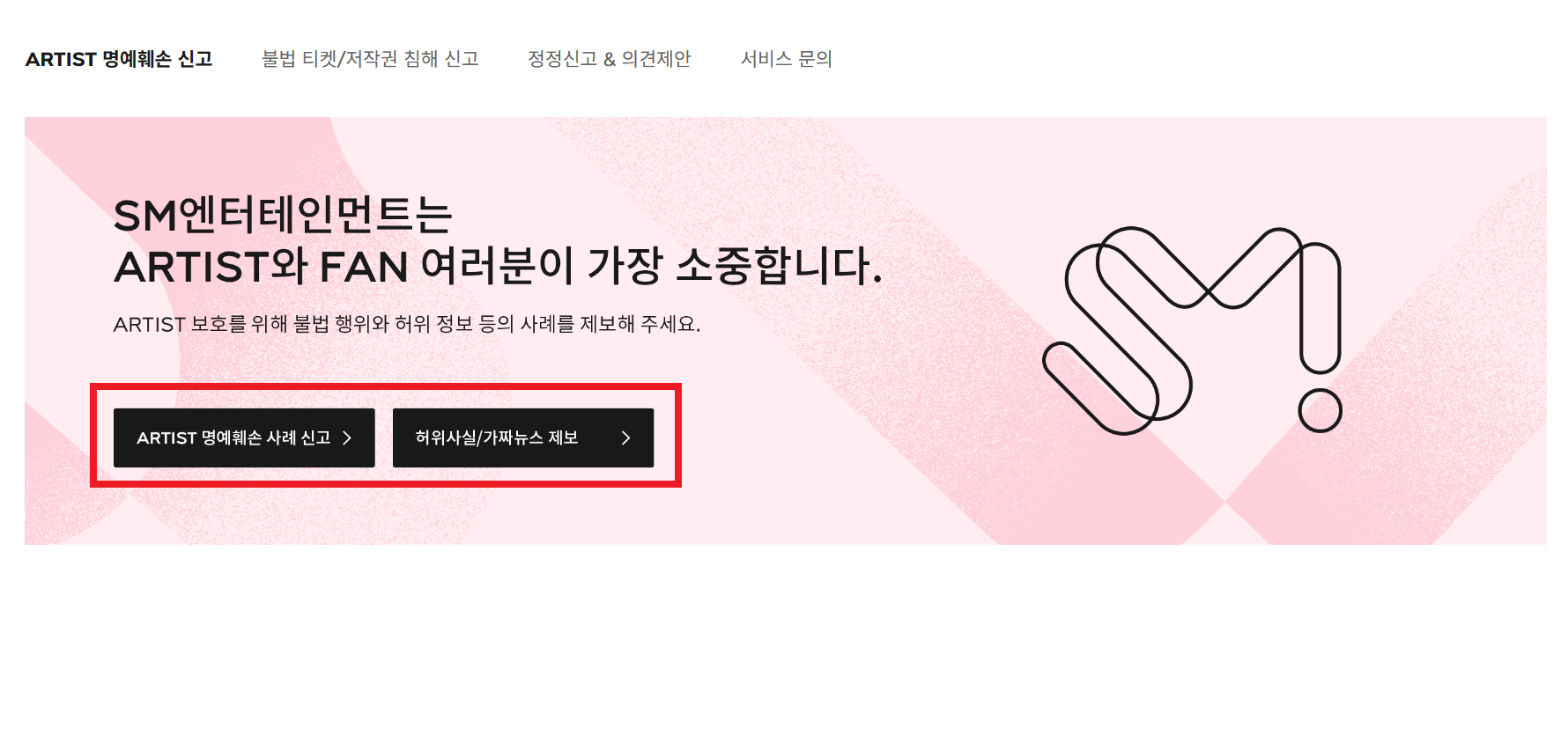 2. ARTIST 명예훼손 사례 신고 / 허위사실 및 가짜뉴스 제보 중 해당란 클릭