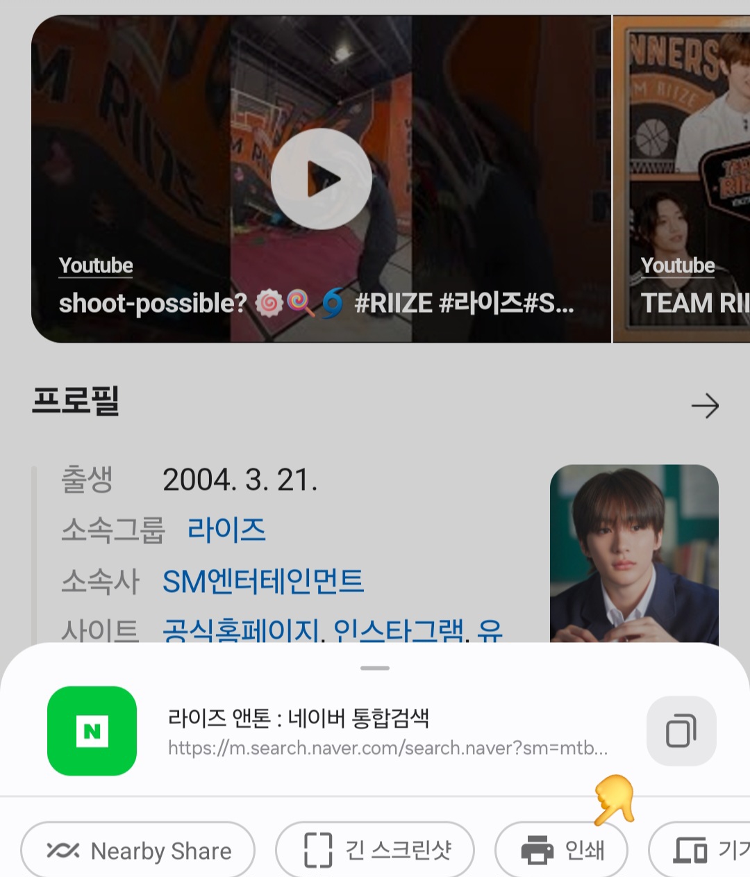 2. '공유' 클릭 후 공유창에서 '인쇄' 선택
