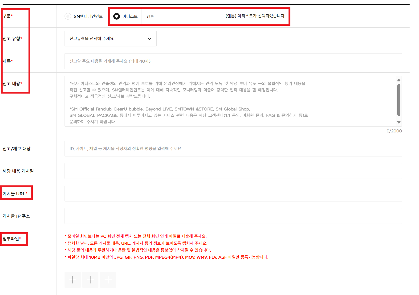 * 내용: 해당 계정 or 해당 게시물에서 RIIZE ANTON에 대한 루머 유포 및 비방을 통해 아티스트의 명예를 심각하게 훼손하고 있습니다. 이에 SM 엔터테인먼트가 법적 조치를 취해 소속 아티스트를 보호할 것을 촉구합니다.