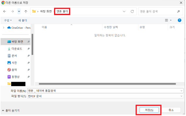 4. 폴더에 저장 / 파일 이름 : ex) 앤톤 악성 게시물 자료